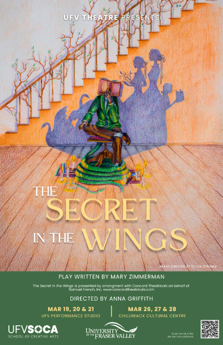 Directed by Anna Griffith, The Secret in the Wings will run from March 19 until March 28, 2026. This will be the second production of UFV Theatre's 2025-2026 season, and its run will be split between UFV Abbotsford’s Performance Studio, and at the Chilliwack Cultural Centre’s Rotary Hall Studio Theatre.